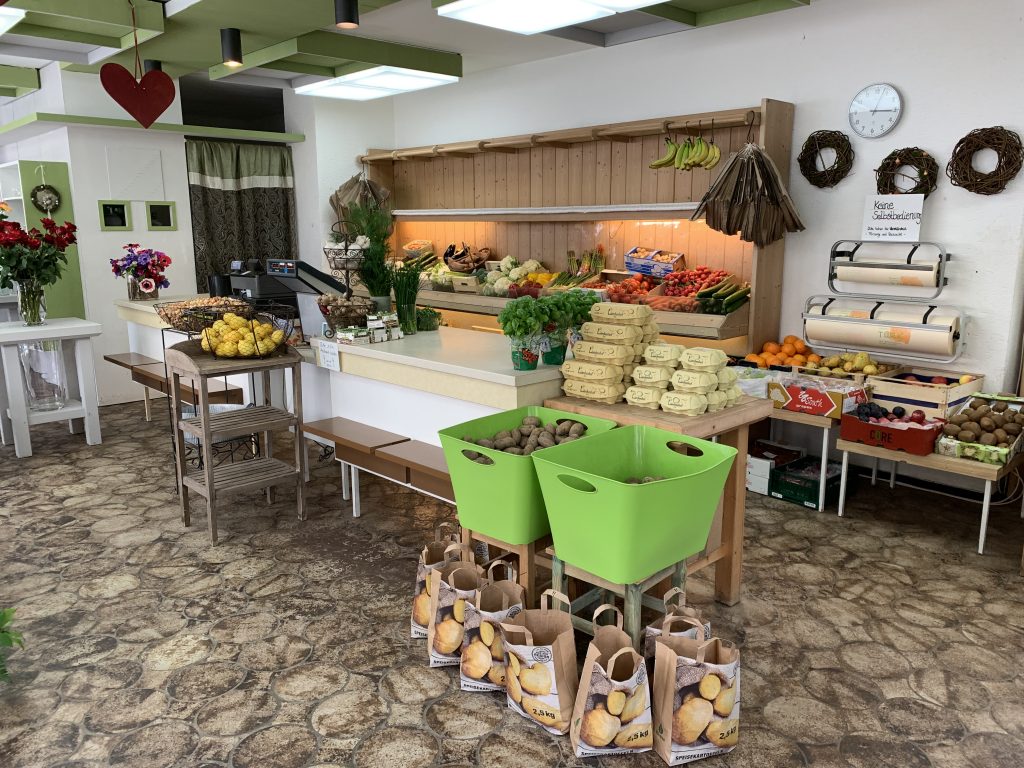 In unserem Hofladen erhalten unsere Kunden das ganze Jahr über frisches Obst, Gemüse und Eier.